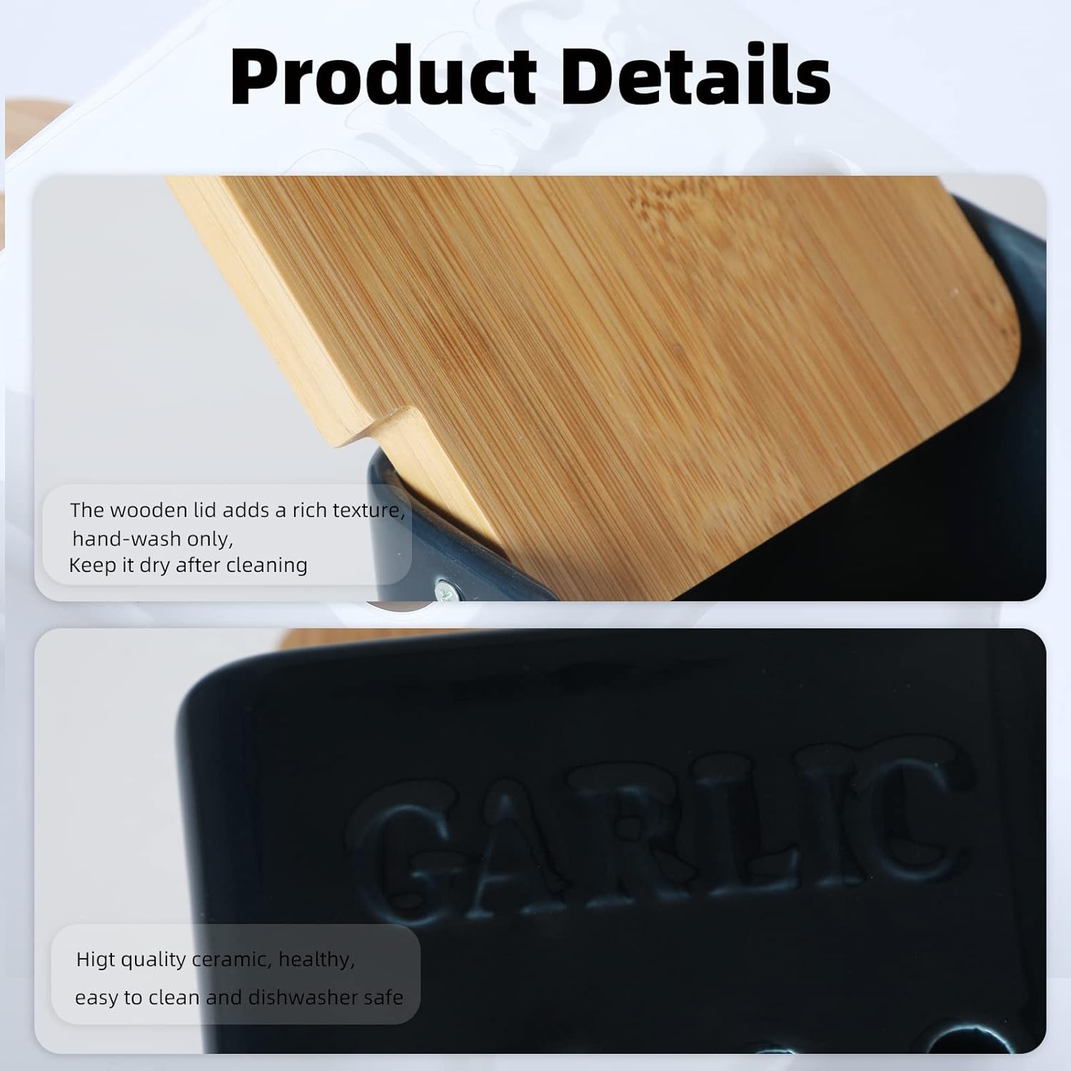 - CERAMIC MATERIAL : This Garlic Keeper is made of ceramic.The surface is smooth and translucent, which is easy to clean