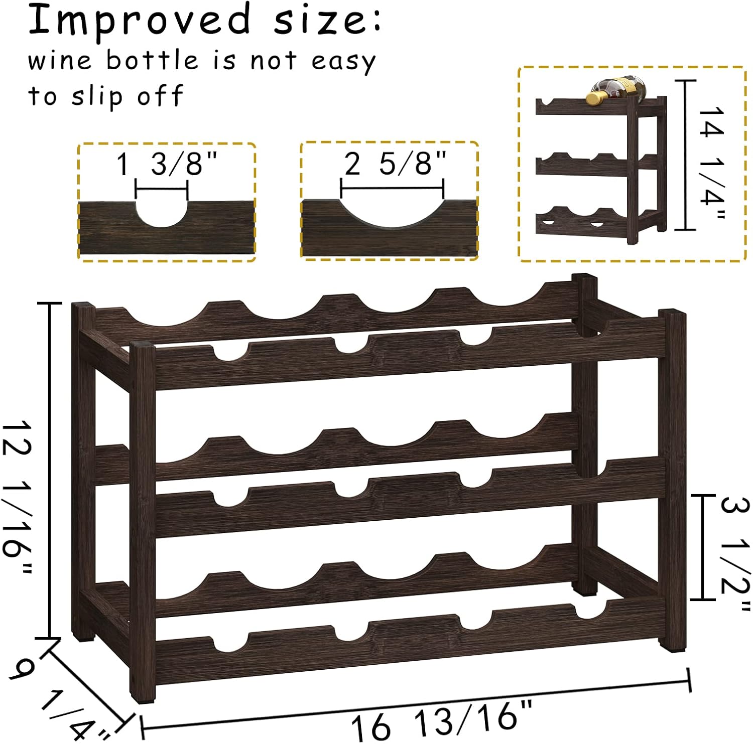 - MORE CONVENIENT STORAGE-UP TO 12 BOTTLES OF WINE: The 3 tier wine rack can accommodate a total of 12 bottles of about 750 ml of red wine or other wine of the same size, making it easier for you to store wine; This wine rack freestanding floor is a good choice for wine lover