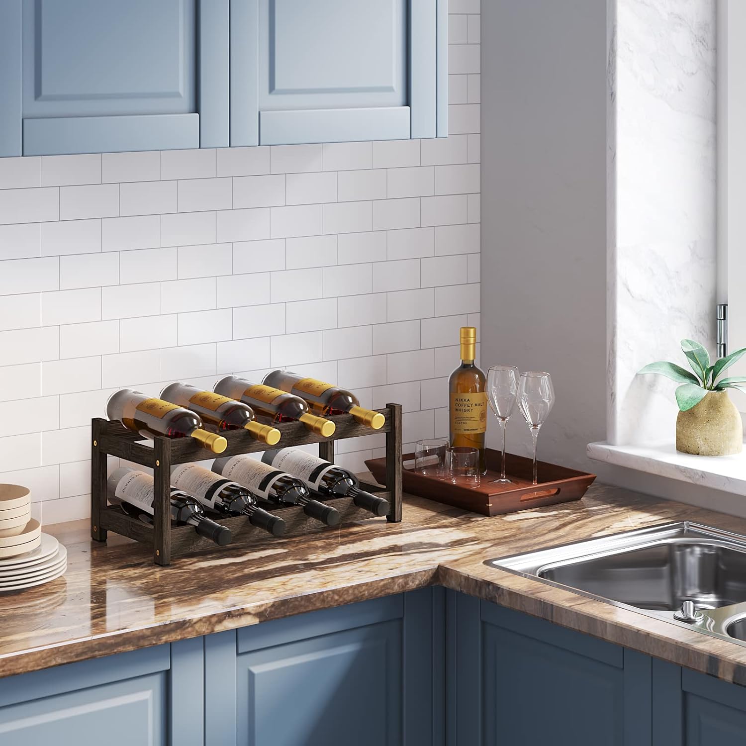 - Space Saving and Fits Any Room or Decor: It's functional, coordinates well with existing décor, and ideal for any flat surface area in a pantry, storage cabinet, kitchen, dining room, basement, wine cellar, or bar; Whether you want a rustic wine holders stands, modern or industrial wine rack, this wine storage rack fits anywhere in your home