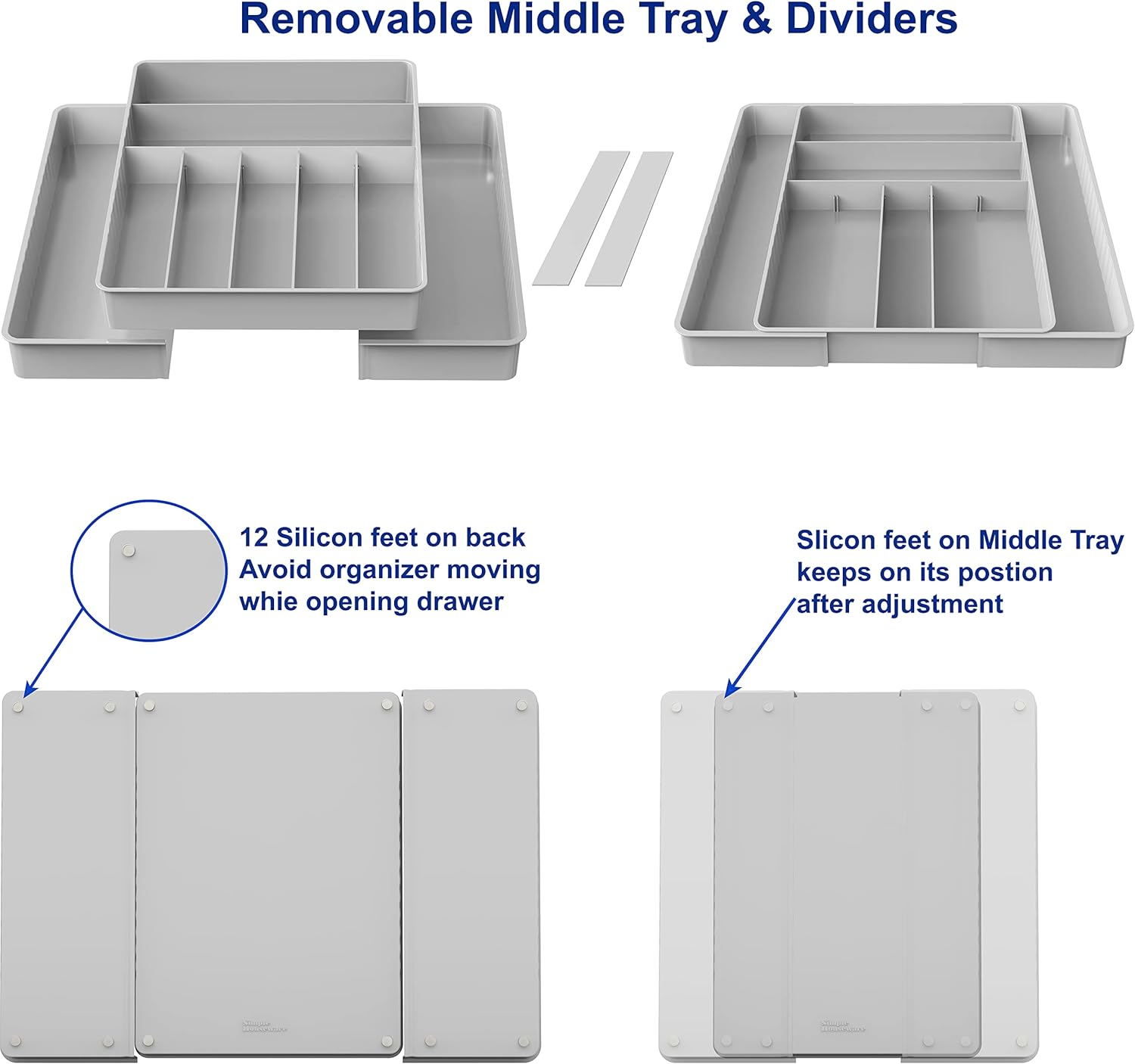 - ✅ Expandable & Adjustable Width: Fits most modern drawer sizes, expands easily to maximize space; perfect for silverware, cooking tools, and gadgets