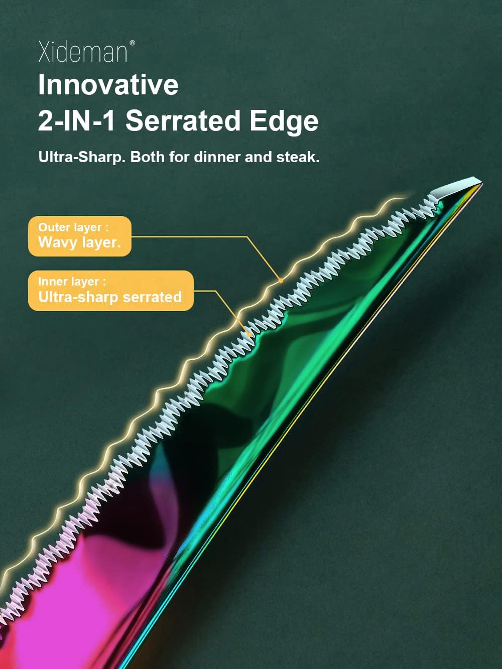- Special Feature : Innovative Ultra Sharp 2-IN-1 Serrated Knife, Non-Slip Grip, Rust Resistant