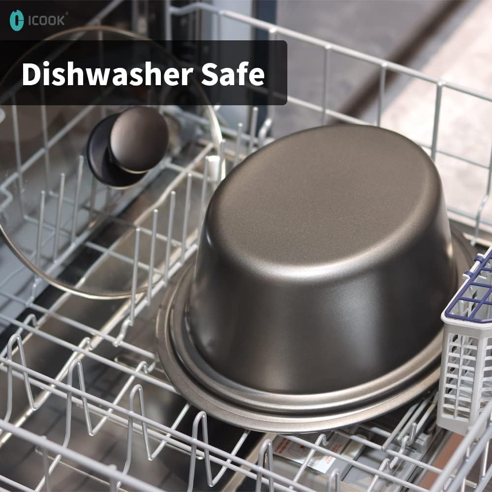 - [Tempered Glass Lid]Full-view Glass Lid with Cool Touch Handles for You to Monitor the Food When Cooking.Dishwasher Safe.