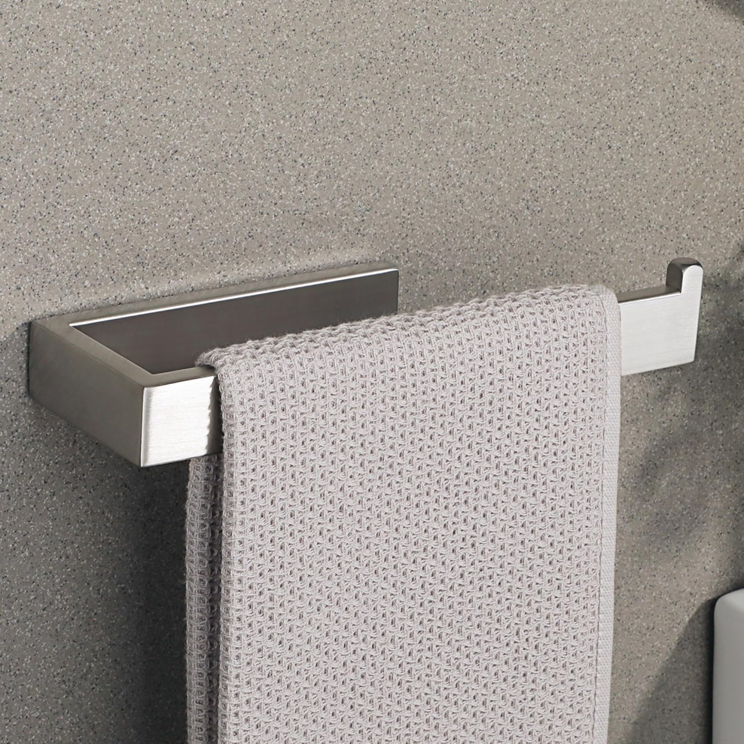 - WIDE APPLICATION - Perfect for shower, bathroom, kitchen, laundry room, cabinets, wash basins, etc. Please note, the brushed nickel towel bar can only be fixed by drilling, not by pasting.