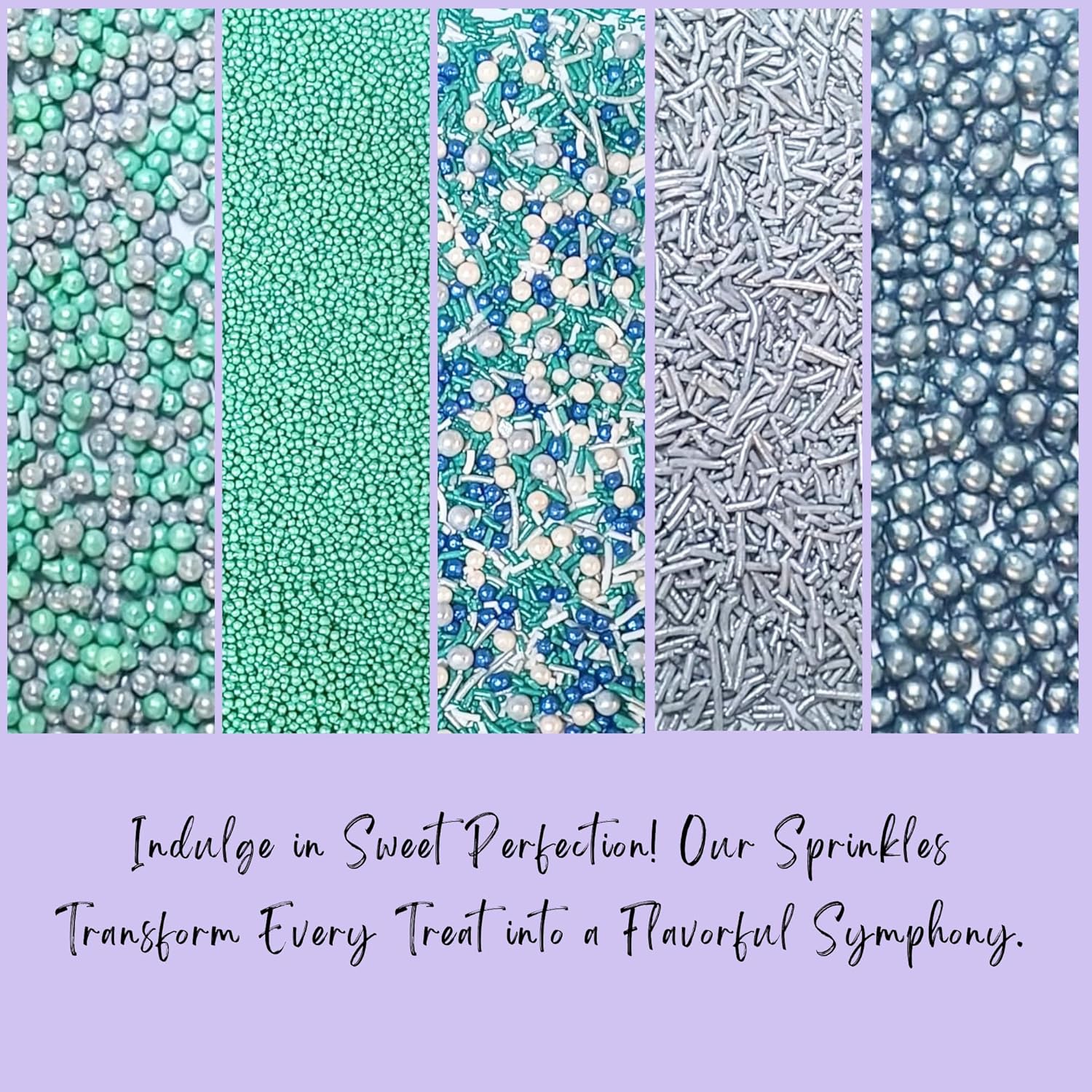 Confect Edible Sprinkles | Navy Blue & Teal Dragees, Green & White Jimmies, Bright Blue Sparkling Sugar | Baking Toppings & Decorations | Sprinkle for Cake & Cupcake Decorating – Vegan, Gluten-Free, Nut-Free, Soy-Free, Dairy-Free, Palm Oil-Free-5 Oz