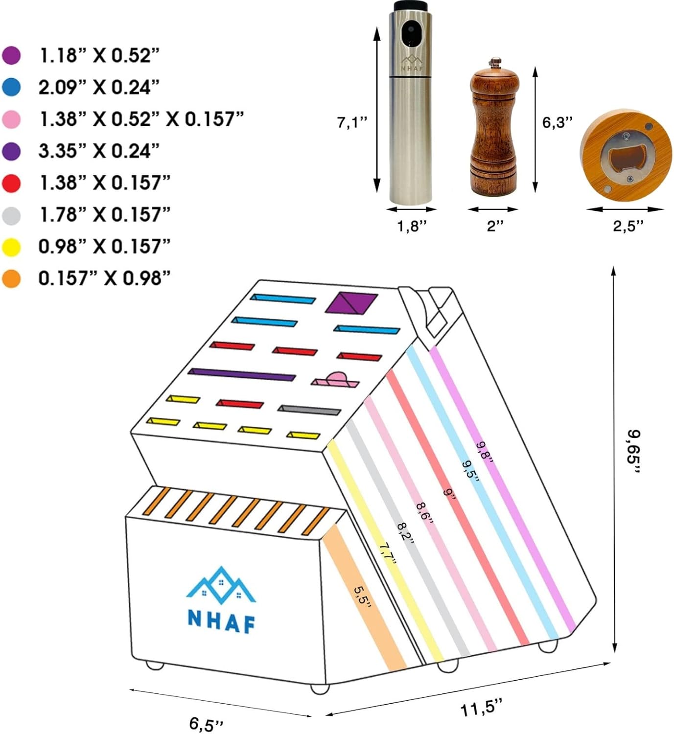 - 🥦【Dedicated Service, 100% Lifetime Satisfaction】: Newly launched, we have some small gifts for our customers; they include a pepper grinder, a wooden beer can opener, an exclusive oil spray bottle for grilled dishes, and BBQ. We hope that NHAF will accompany your cooking hobby. If you have any questions about the product, feel free to contact us, we are here and will, within 24 hours, help you to solve the problem; the lifetime service lets you not have to worry about the wooden knife block