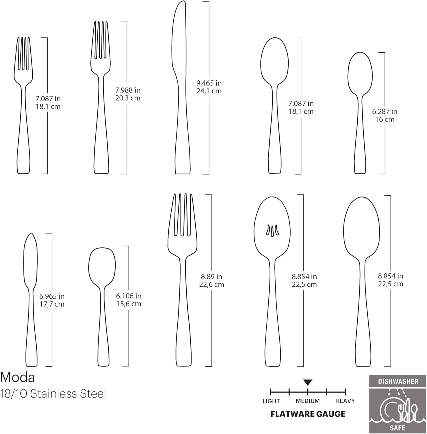 - Included Components : one dinner spoon, one salad fork, one dinner fork, one teaspoon, one dinner knife