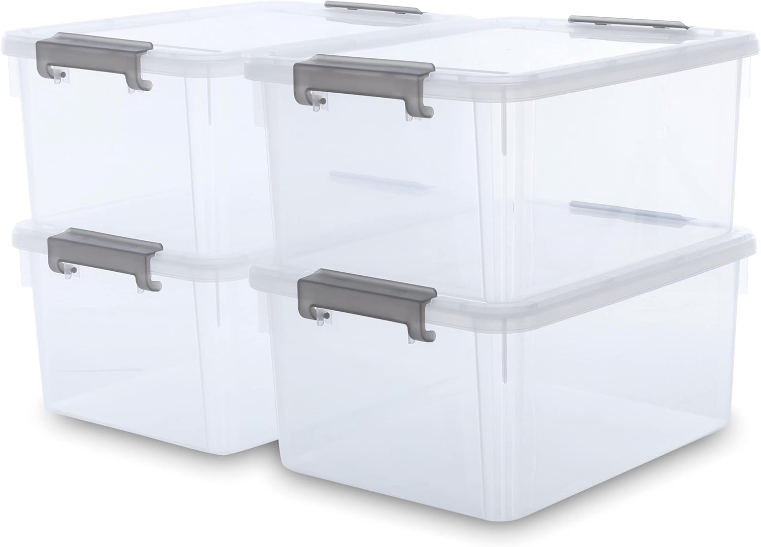 Citylife 17 QT Plastic Storage Bins with Latching Lids Stackable Storage Containers for Organizing Large Clear Storage Box for Garage, Closet, Kitchen, 4 Packs