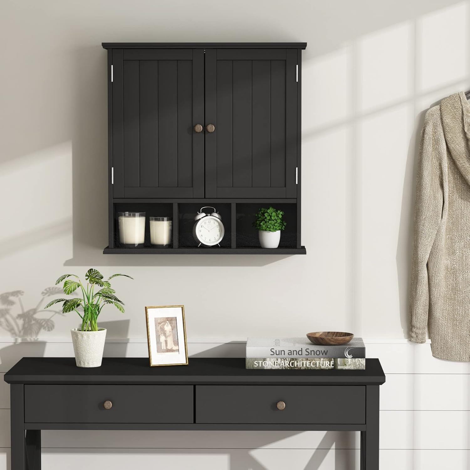 ChooChoo Bathroom Cabinet Wall Mounted 2-Door with 3 Open Shelves, Wooden Medicine Cabinets with Adjustable Shelf,Space Saver Storage Cabinets Over The Toilet for Bathroom&Living Room,Black
