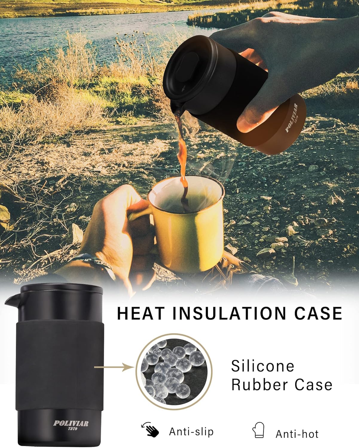 - NEVER BURN YOUR HANDS - Silicone rubber case on the body of french press prevents your hand from burning and avoids slipping, protecting user's hands in the process of brewing coffee. The width of french press, which is 2.99-in, and soft rubber case will give user a comfortable grip when they pour coffee.