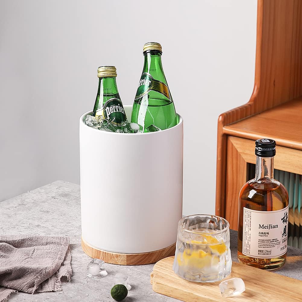 Sweejar Kitchen Utensil Holder with Wooden Bottom, 8.2" Ceramic Utensil Crock to Hold Spatulas for Cooking Countertop, Housewarming, Wedding, Birthday Gift (White)