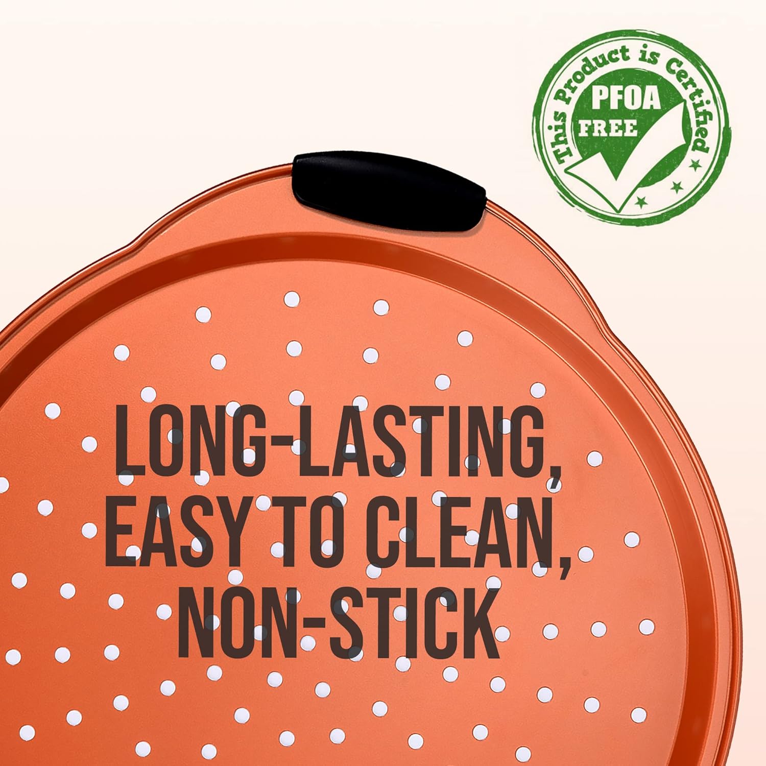- DURABLE AND DISHWASHER SAFE: Although our pizza pans are recommended for hand wash only, it is also dishwasher safe because it is PFOA, PFOS, PTFE Free. The black silicone handles also makes it safe and durable for use, Ideal for baking or grilling