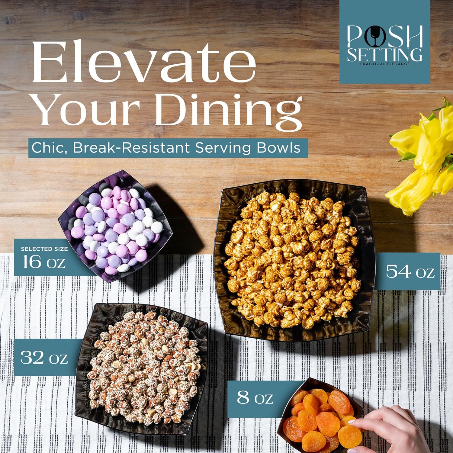 - MULTIPURPOSE USE: These 16 oz black plastic serving bowls are great for any occasion. Whether you're hosting a salad bar, serving snacks, candies, chips, or even using them for arts and crafts, these thanksgiving serving bowls meets all your needs. Enhance your party setup with these practical and stylish bowls that fit seamlessly into any event. Use them as candy dishes, chip bowls for parties, black plastic bowls, taco bar serving set for a party, and party bowls.