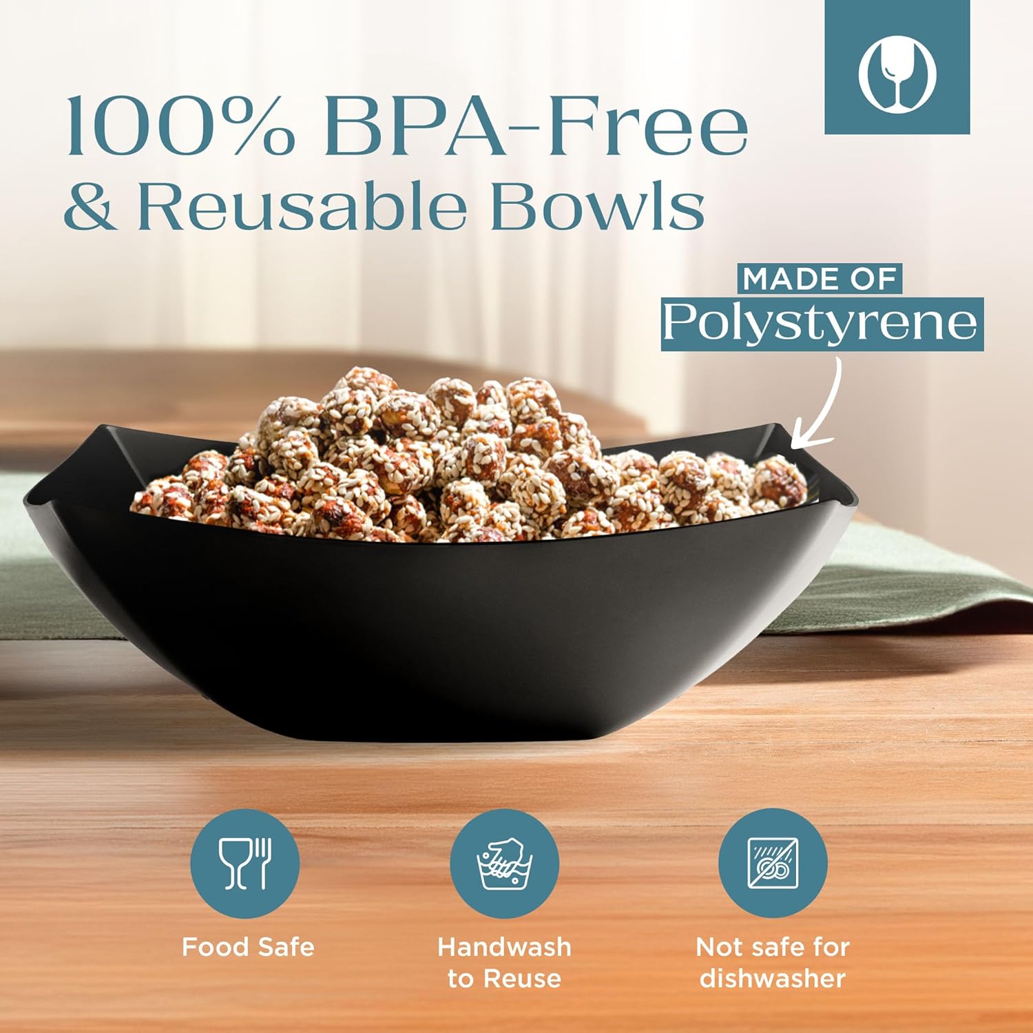 - MULTIPURPOSE USE: These 32 oz black plastic serving bowls are great for any occasion. Whether you're hosting a salad bar, serving snacks, candies, chips, or even using them for arts and crafts, these thanksgiving serving bowls meets all your needs. Enhance your party setup with these practical and stylish bowls that fit seamlessly into any event. Use them as candy dishes, chip bowls for parties, black plastic bowls, taco bar serving set for a party, and party bowls.