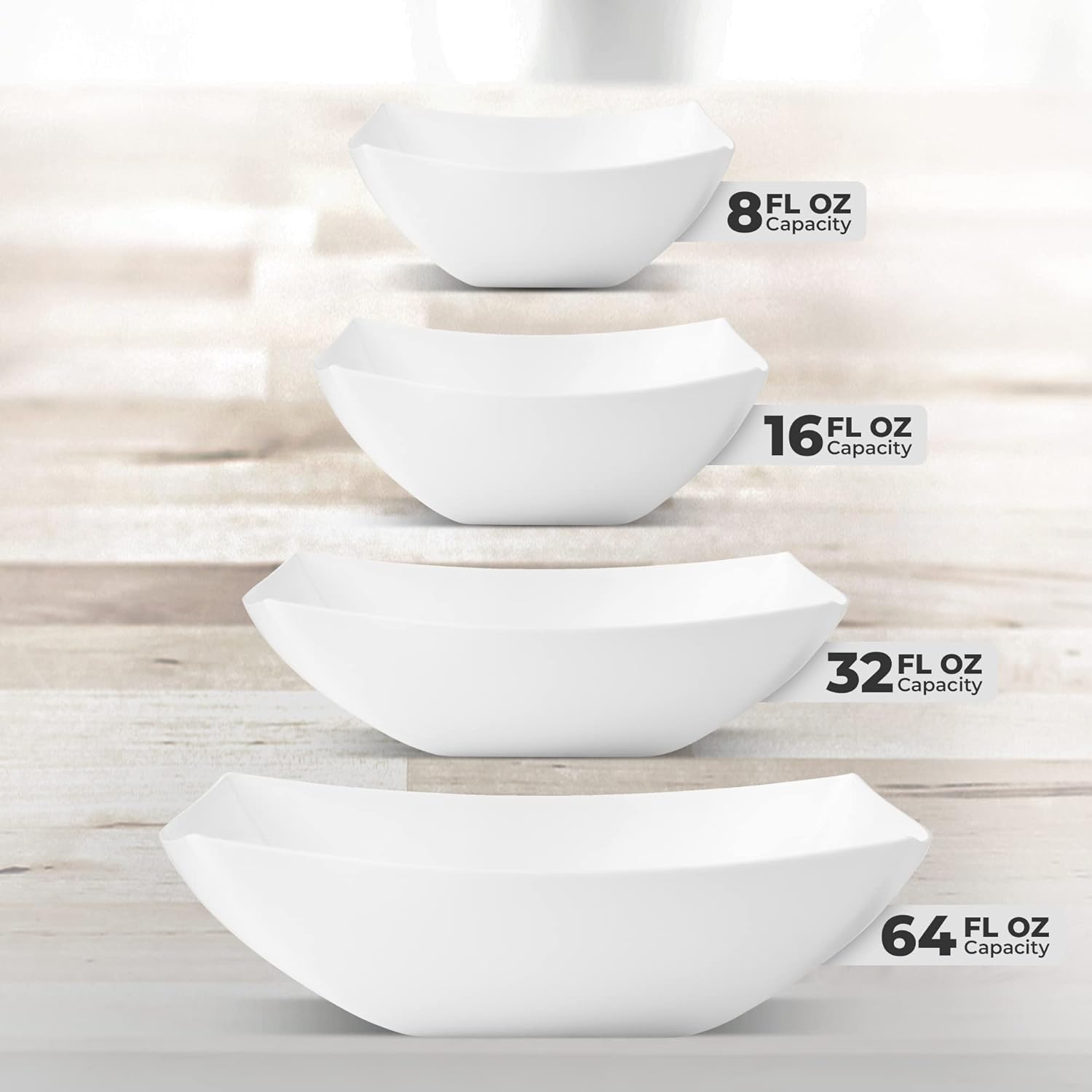 Posh Setting - White Plastic Serving Bowls for Party (32oz - 4 Pack) Square Bowls, Disposable Chip Bowls, Candy Bowls for Party Table, Salad & Fruit Bowls for Party, Candy Containers for Candy Buffet