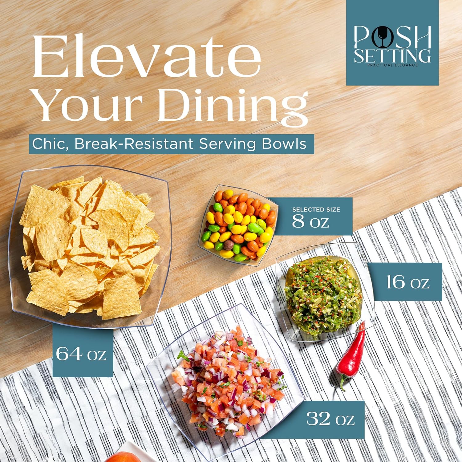 - MULTIPURPOSE USE: These 8 oz clear plastic serving bowls are great for any occasion. Whether you're hosting a salad bar, serving snacks, candies, chips, or even using them for arts and crafts, these thanksgiving serving bowls meets all your needs. Enhance your party setup with these practical and stylish bowls that fit seamlessly into any event. Use them as candy dishes, chip bowls for parties, clear plastic bowls, taco bar serving set for a party, and party bowls.