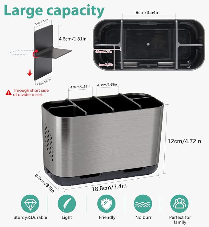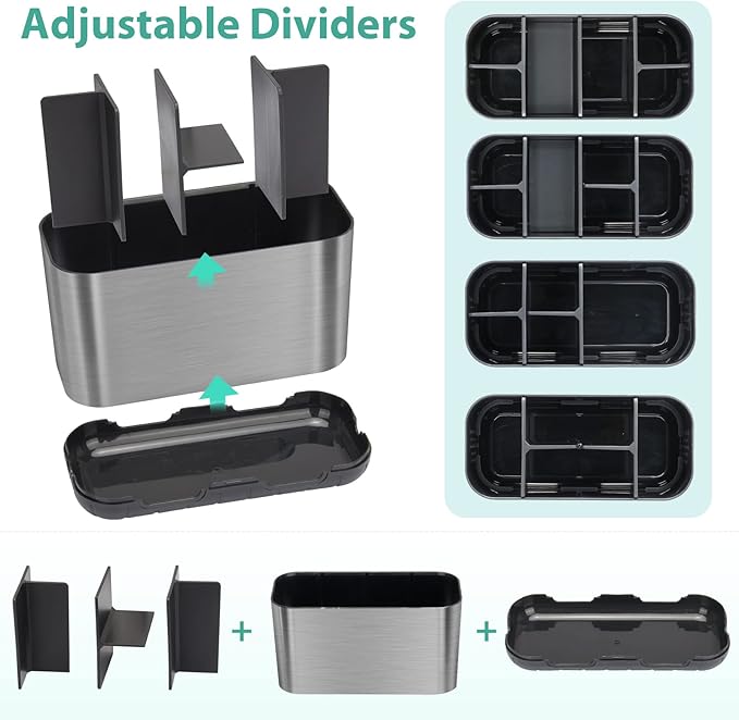 - Perfect size & Adjustable Dividers: Boperzi brush nickel toothbrush holder have enough capacity to store different kinds of bathroom stuff. And the middel divider of bathroom storage organizer set is adjustable.