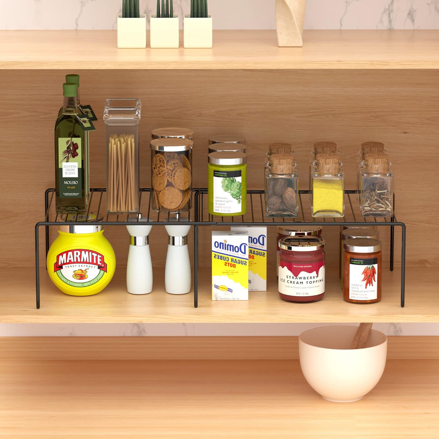 Redrubbit Expandable Metal Rustproof Kitchen Counter and Shelf Rack, 4 Piece Set of 2, Space Saver for Kitchen, Fridge, Bathroom
