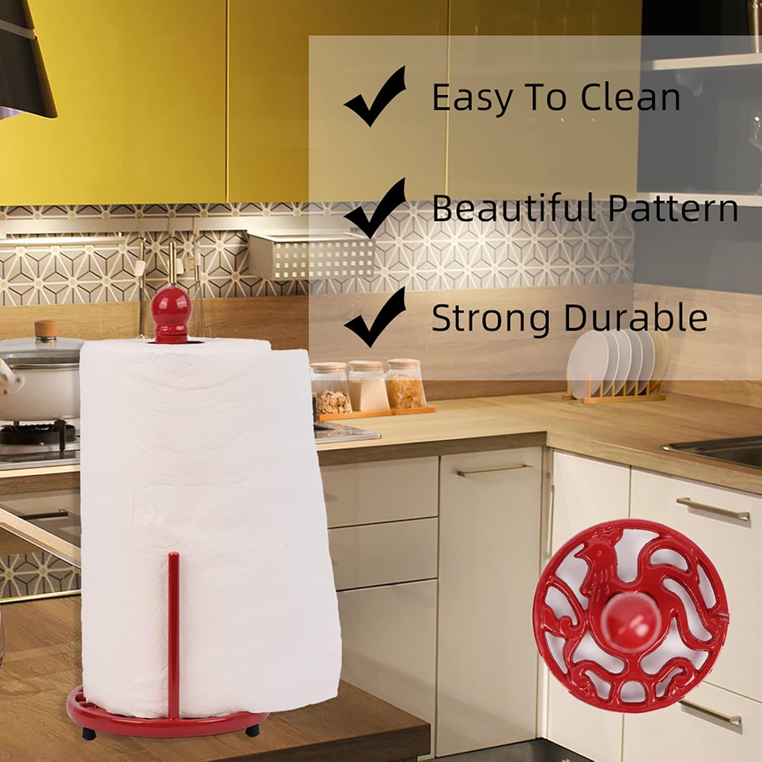 - ✅VINTAGE DESIGN -- This paper towel holder features a unique vintage rooster design that adds charm to your kitchen countertop. As a home decoration, it makes for a unique countertop display.
