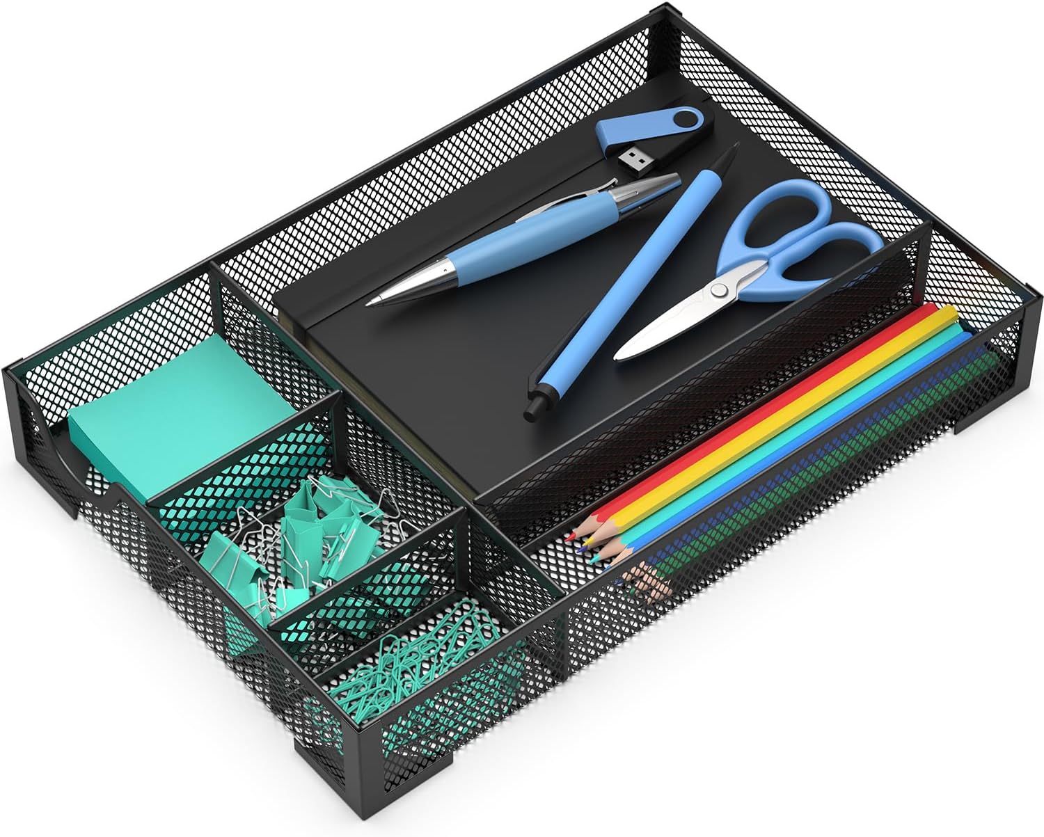 - Multiple Compartments: Features 4 small compartments, which are perfect for storing pens, paper clips, and other small office supplies. Additionally, there is one large compartment that can accommodate notebooks, files, and other larger items.
