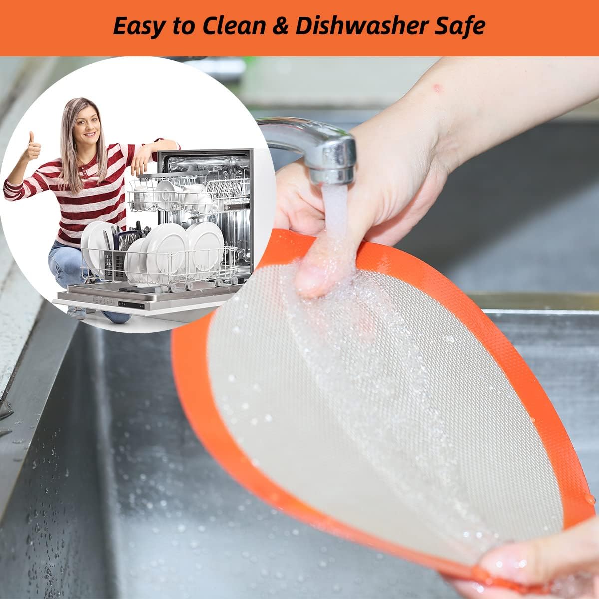 - 【SMOOTH SURFACE, TOUGH AND TENSILE INTERIOR】These non-stick silicone round baking mats 10 inch are easy to use whether you are highly skilled in baking or not. With smooth, shiny surface, you will find the cleanup an easy peasy. Just simply rinse off in warm soapy water and let it dry. If you want to maximize time saving, dishwasher is also a good alternative. On the other hand, with tough and tensile interior, they’re very durable which helps you save money imperceptibly day by day.