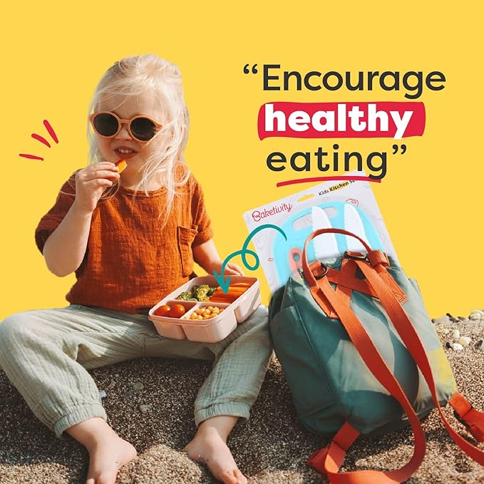 Baketivity Kid Safe Plastic Knives For Real Cooking With Cutting Board, Peeler For Kitchen - Knife Set With Blunt Tip, Dishwasher Safe, BPA Free Kids Knives For Cutting