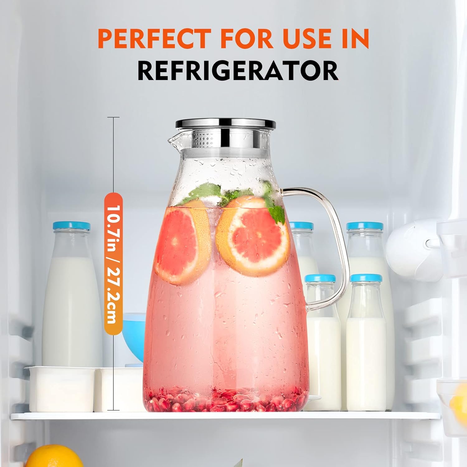 - DURABLE & SAFE - Our water pitcher is made of lighter and stronger borosilicate glass with lead-free for a healthy life. This glass is tested to be the most reliable type of glass and can withstand temperatures from 0 to 300 ℉. It is safe that you put pitcher on the stovetop or refrigerator, so you can enjoy cold or hot drinks anytime.