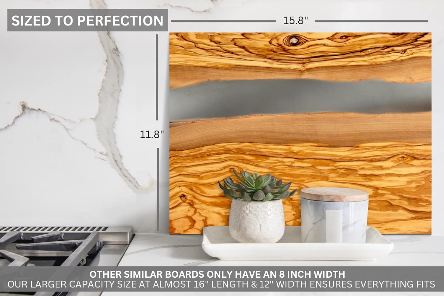 - ๐ชต Only the Finest Materials: What gives this decorative cheeseboard its distinctive charm? It's made of genuine Italian olive wood, famous for rock-hard strength, richly patterned grain, and gorgeous golden hues; Plus, it's adorned with unique resin artwork depicting a beautiful river; Choose from 4 resin colors: Black, Blue, Gray, and White Pearl