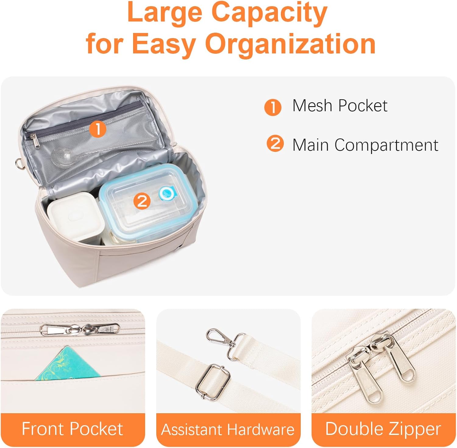NOL Natural Organic Lifestyle Insulated Lunch Bags for Women Cooler Bag Lightweight Nylon Waterproof Lunch Box For Work (Small, Cream)