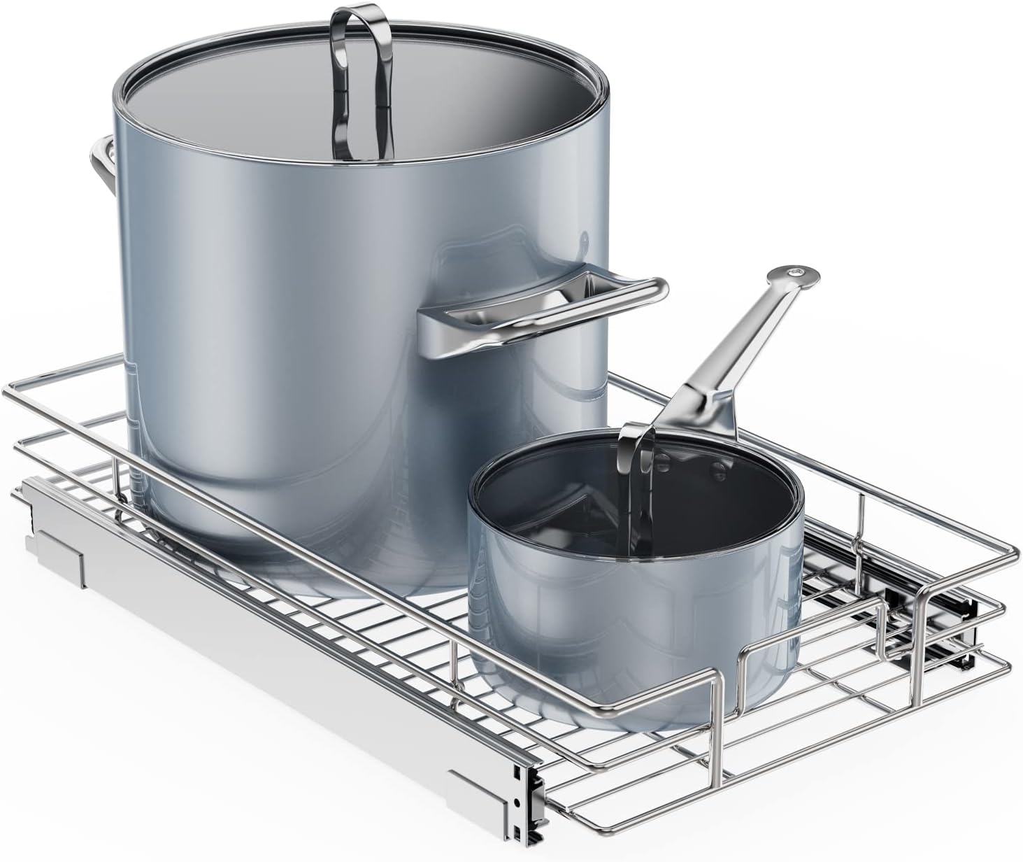 ROOMTEC Pull Out Cabinet Organizer, Cabinet Pull Out Shelves 11" W x 21" D, Heavy Duty Cabinet Drawers Slide Out Kitchen Cabinet Organizers Storage Shelf