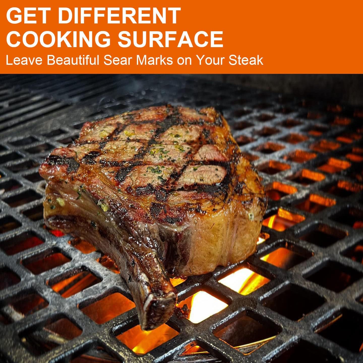 - 【Function】The dual sided searing grate will help you to get steaks with beautiful sear marks. Cleaning it is breeze with some warm water and detergent. You also can put them into dishwasher.