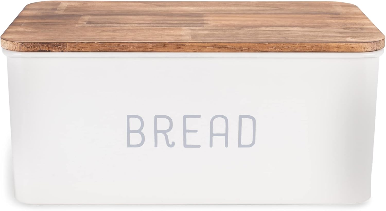 Nat & Jules Matte White 12 x 7 Metal Enamel Rubber Wood Lidded Bread Box