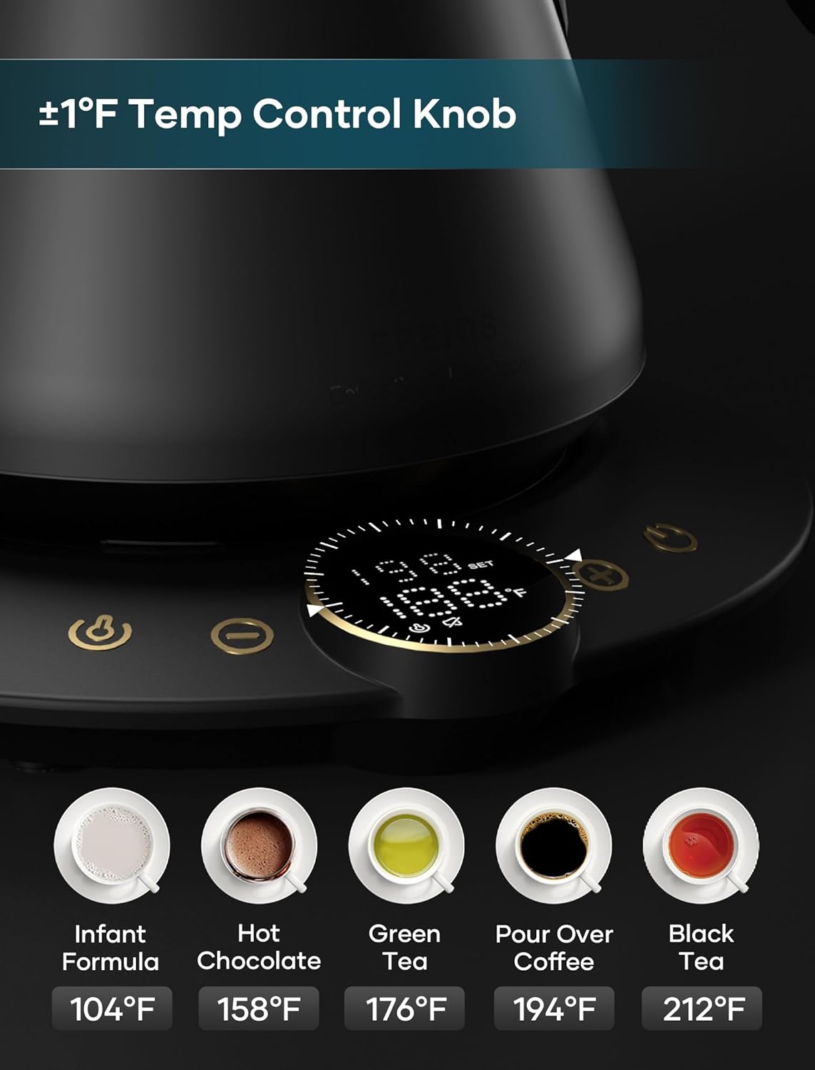 Electric Kettles, Gooseneck Electric Kettle, ±1℉ Temperature Control, Stainless Steel Inner, Quick Heating for Pour Over Coffee, Brew Tea, Boil Hot Water, 1500W/0.9L (Ebony Black)