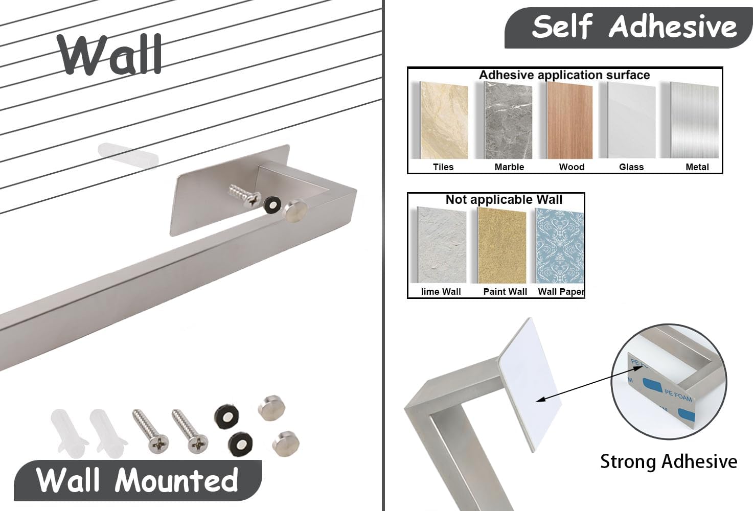 - EASY INSTALLATION: No drill needed, protect your wall from damage. We provide detailed installation instructions in the package. Even if you don't have any “hands-made” experience, you can follow the installation instructions to complete the installation quickly. NOTE--Only suitable for installation on tile, marble, glass, stainless steel walls, not suitable for wallpaper, drywall, painted walls and other non-smooth walls.(Will tear off your wall)