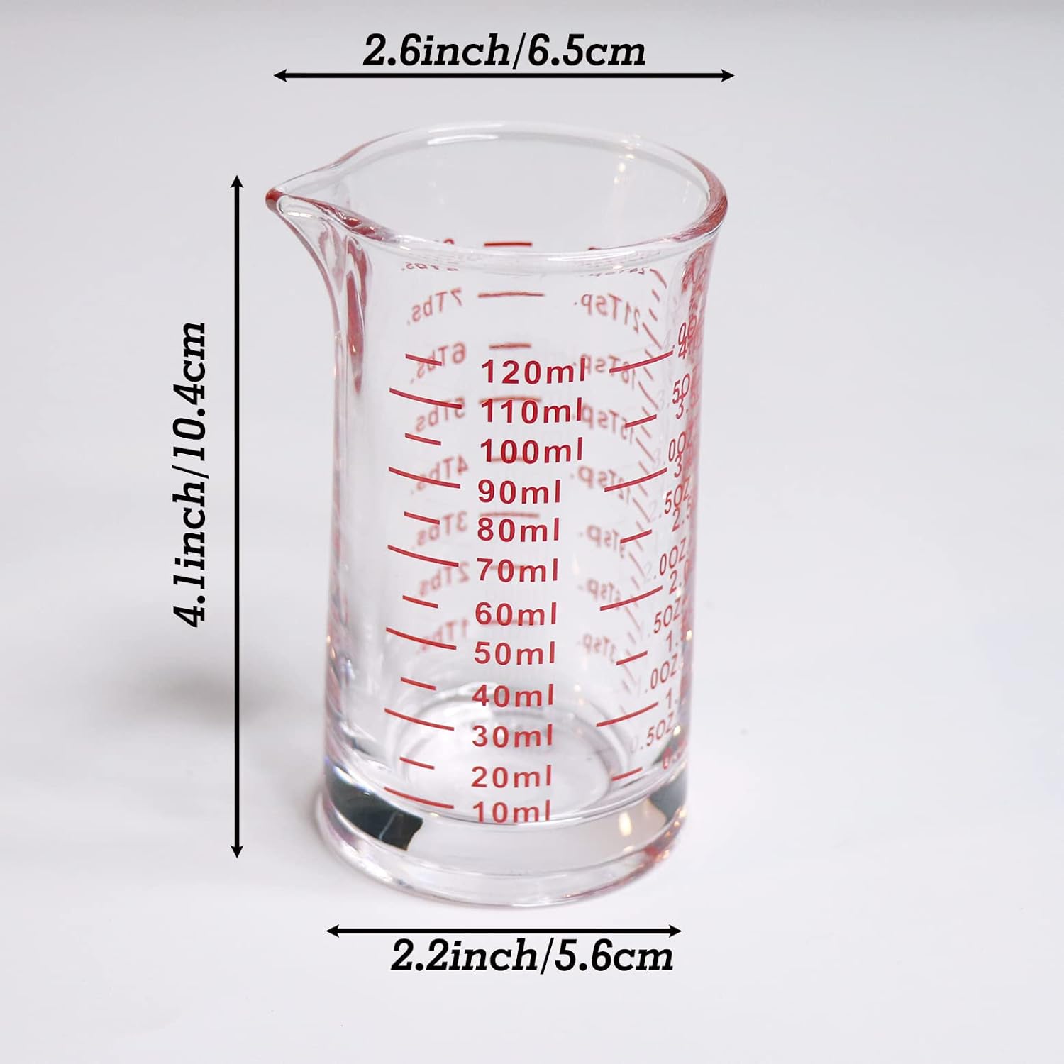 Ackers 4 Oz Glass Measuring Cup,Borosilicate Shot Glass with V-Shaped Spout-Red Line