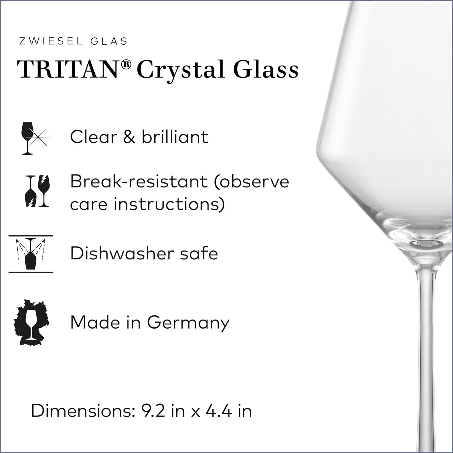 - Made in Germany: Our crystal glasses are produced in Germany and are resilient and strong thanks to the special TRITAN Glass Protect technology
