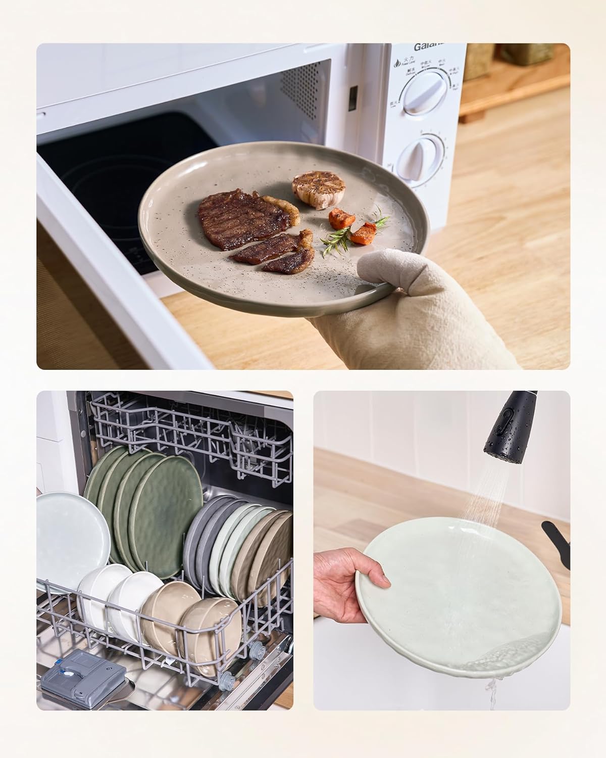 - 【Wave Surface Design】The wave surface design creates a special gloss of our glaze, which makes the dishes elegant and anti-skid. The elegant design is integrated with most kitchen environments.