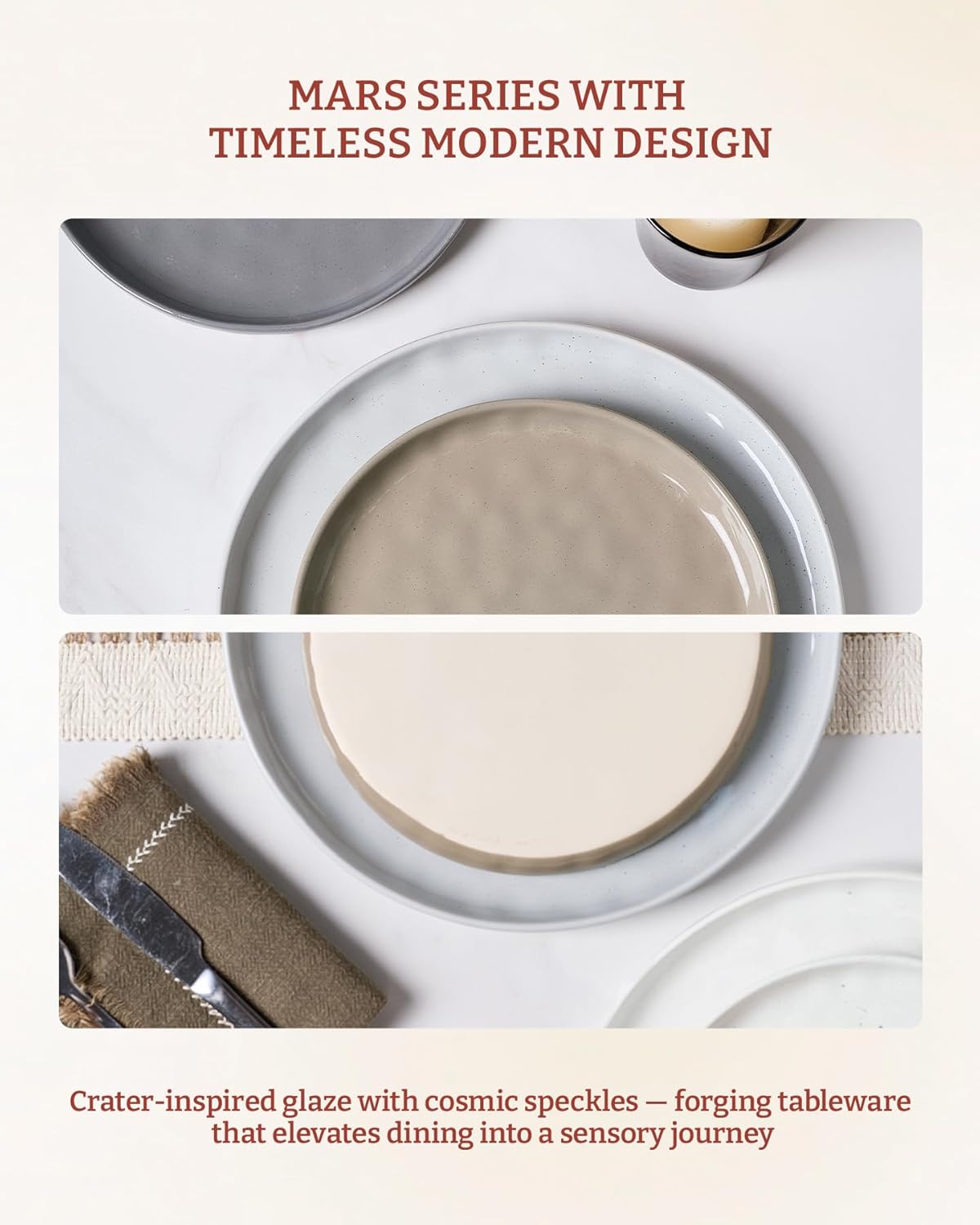 - 【Fun Speckled Design】These dinnerware sets feature a minimalist design. Spruce up meal time with these plates and bowls sets that feature a brown speckled pattern, making each piece unique.