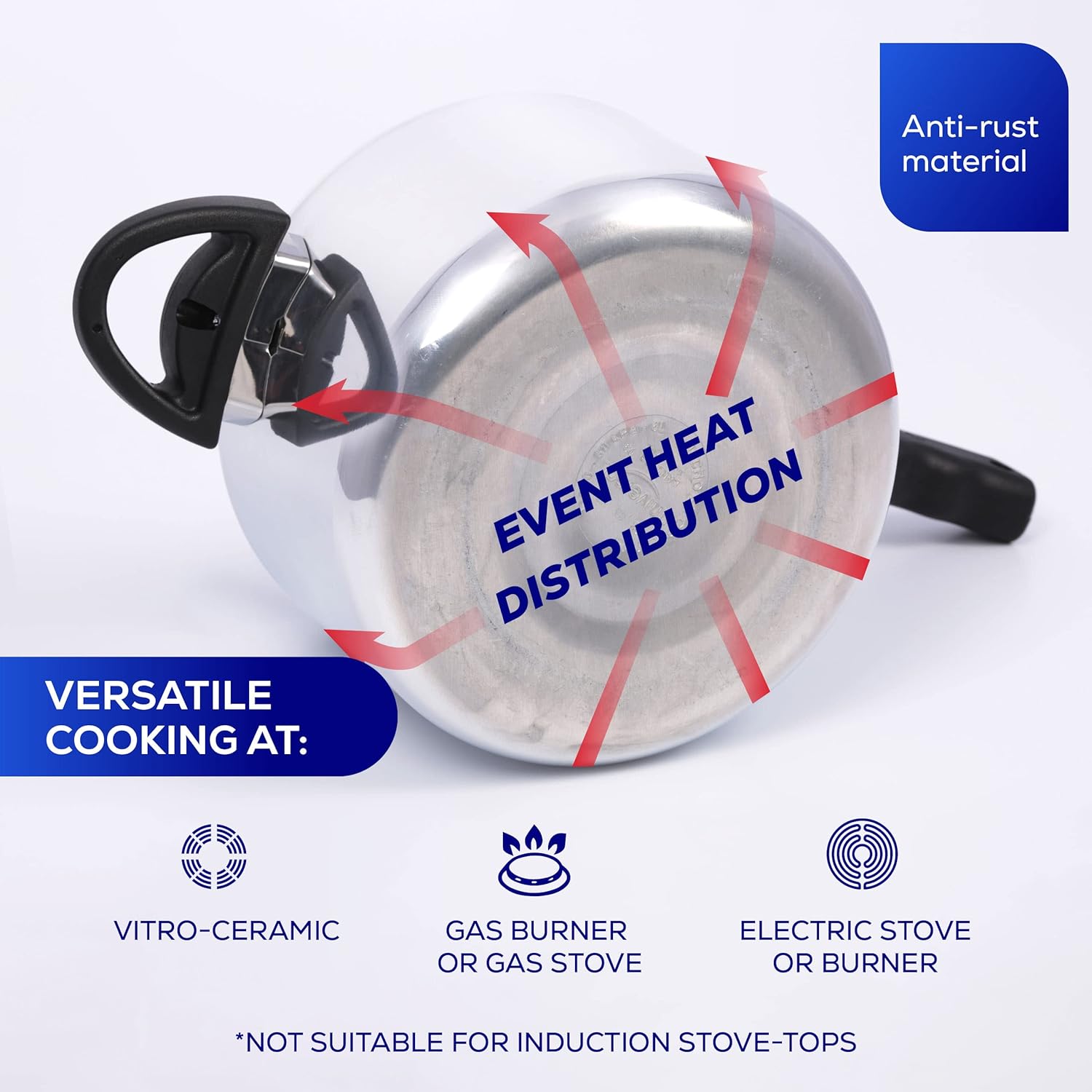 Universal (4.2 Quart / 4 Liter) Pressure Cooker, 5 Servings, Aluminum Pressure Cooker With Multiple Safety Systems and Heat Resistant Handles For Stews, Soup, Meat, and Beans