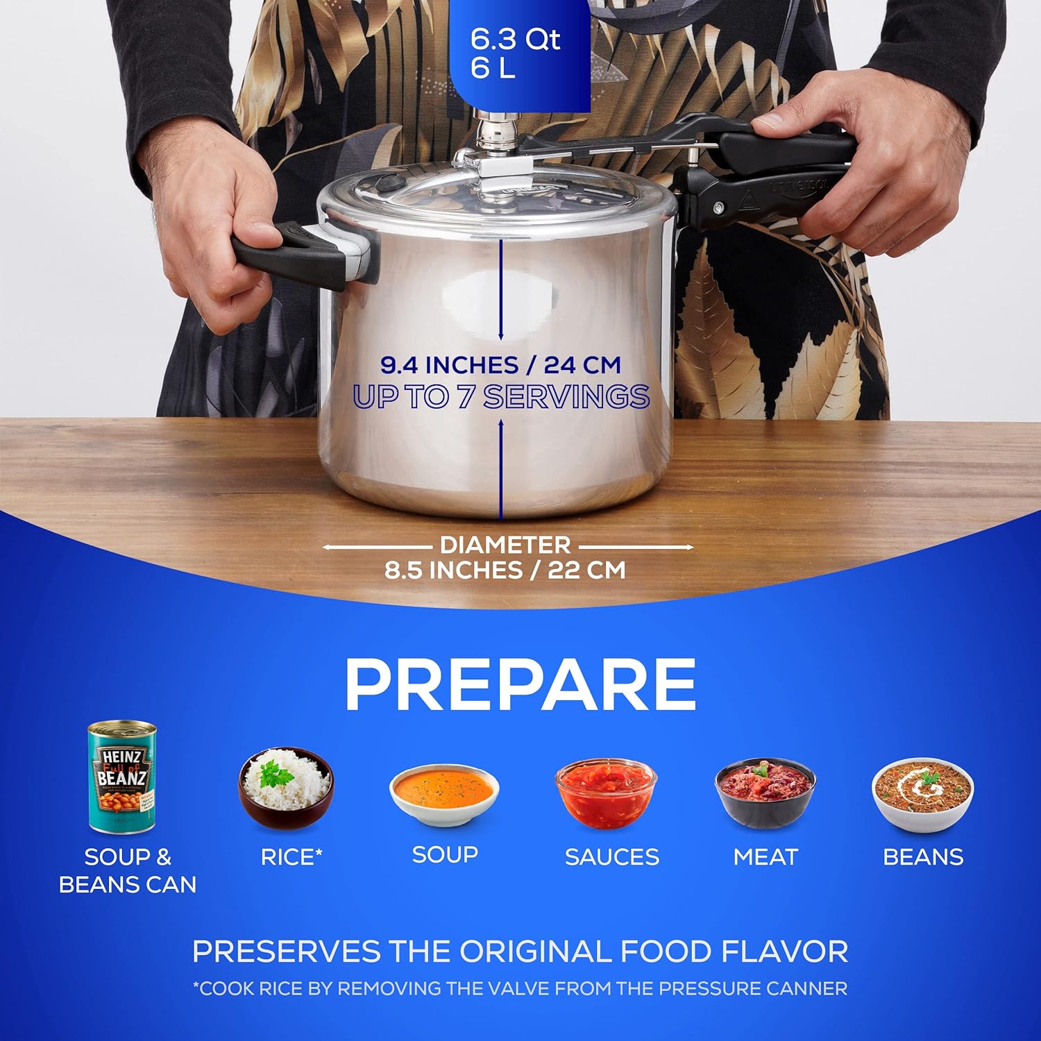 Universal (6.3 Quart / 6 Liter) Pressure Cooker, 7 Servings, Aluminum Pressure Cooker With Multiple Safety Systems and Heat Resistant Handles For Stews, Soup, Meat, and Beans