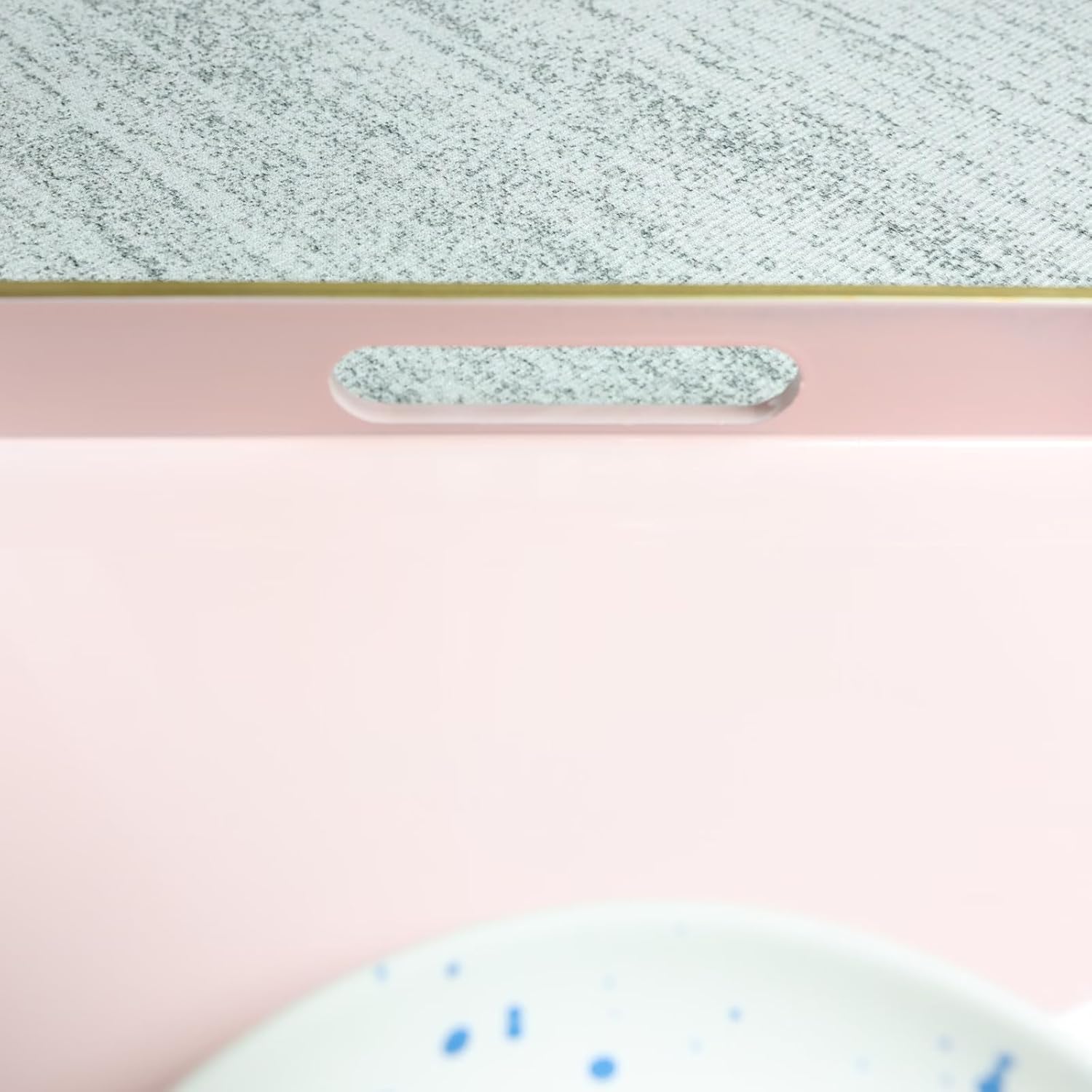 Spsyrine Pink Decorative Serving Tray with Handles, Elegant Plastic Coffee Table Tray for Ottoman, Living Room, Home Decor 15.6" X 10.2"