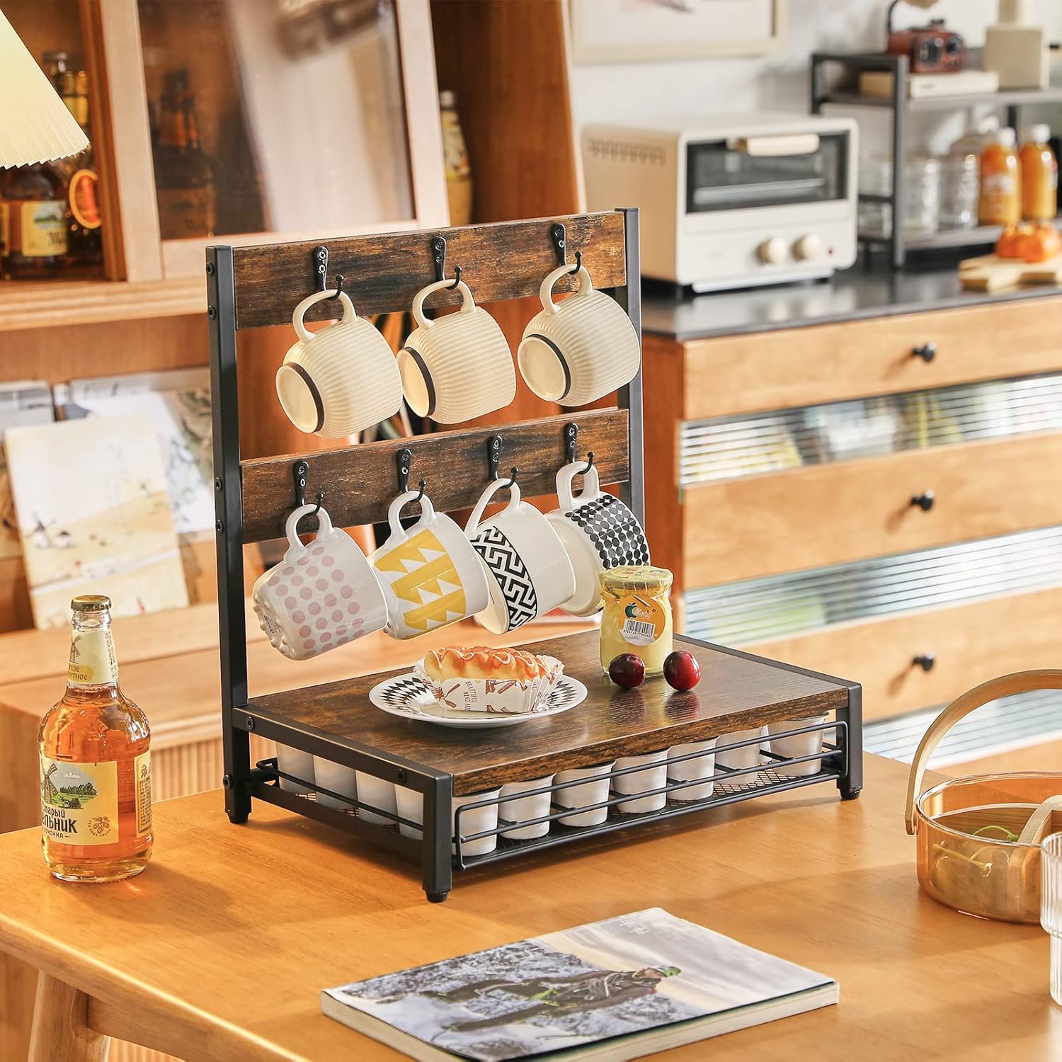 - Multi function: The product can store coffee capsules and mugs, and the panel can also be used as the storage space for coffee beans or coffee machine. The cup holder can hang seven cups of water, and the drawer can store 30-40 capsules of coffee.
