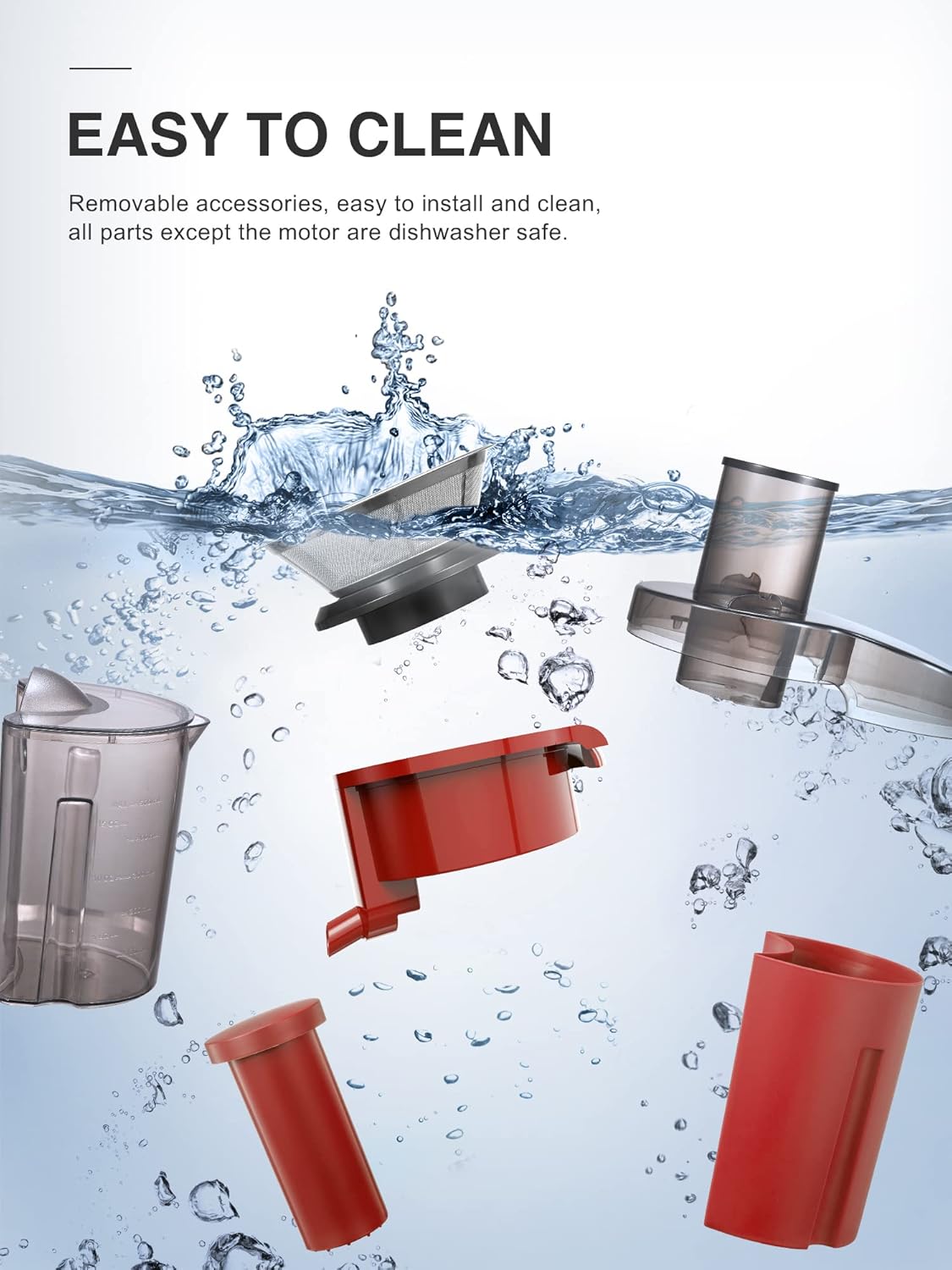 - Safety Design and Easy to Clean - Juicer Extractor with locking system arm, it will not work without cover locked into place. Overload protection system will switch off machine once overheating occurs. Detachable parts makes it easy to clean!