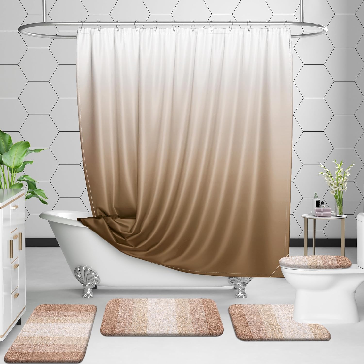 - [Matching Collection, Beautiful Décor & Versatile] Elevate your bathroom decor with our elegant gradient color stripe mats, ideal for sinks, showers, and beyond. Coordinate with matching toilet lid covers and contour rugs for added warmth and style. Complete the ensemble with our complementing shower curtains. Perfect for enhancing your own space with sophistication.