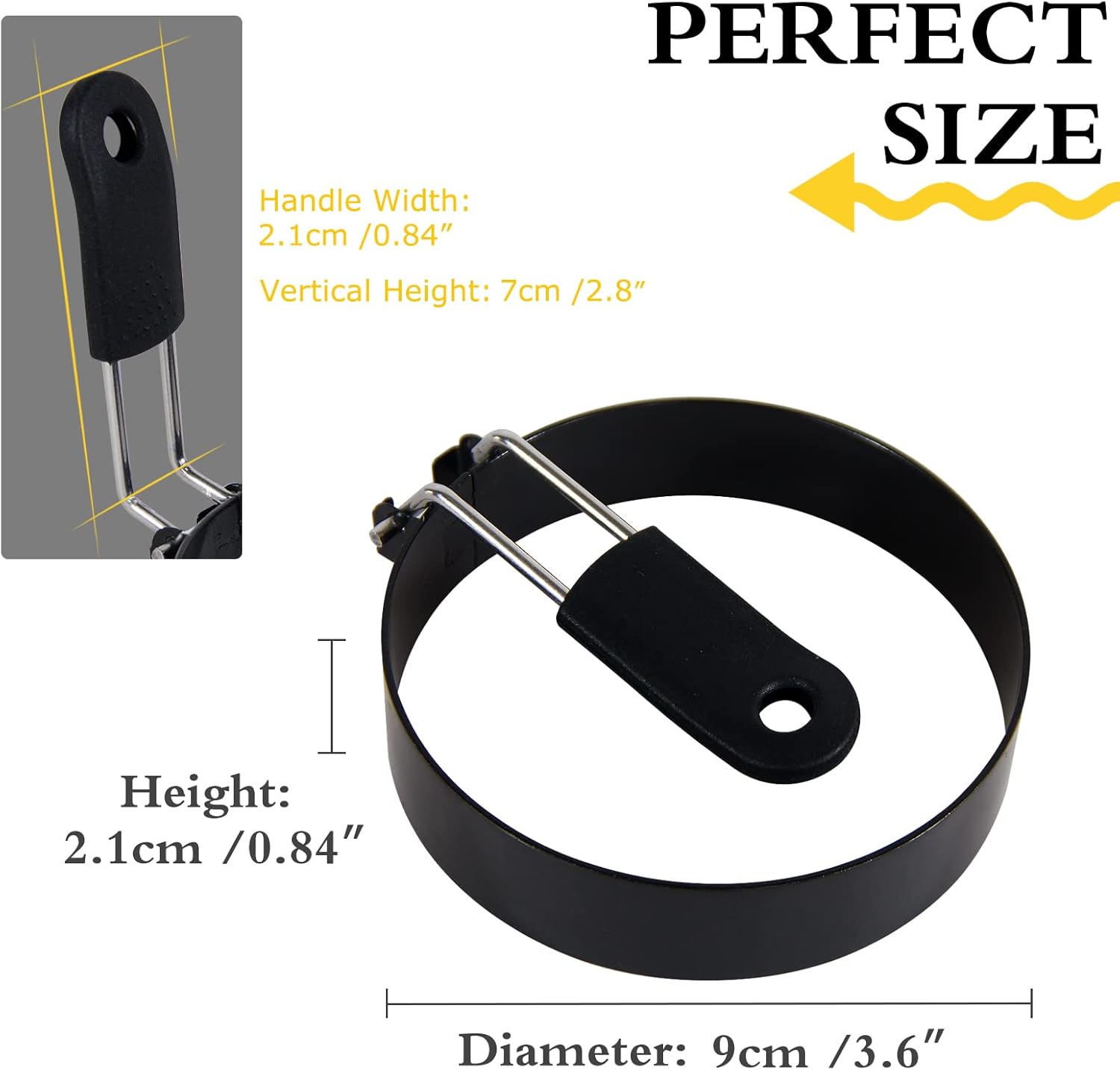 - Practical and convenient - The nonstick egg ring molds can be applied for making breakfast, you can use them to make egg, omelette, pancake, sandwich, burger and more, you can easily get a nice breakfast; And the design of the silicone handle can protect your hands from scalds, and convenient for you to hold.