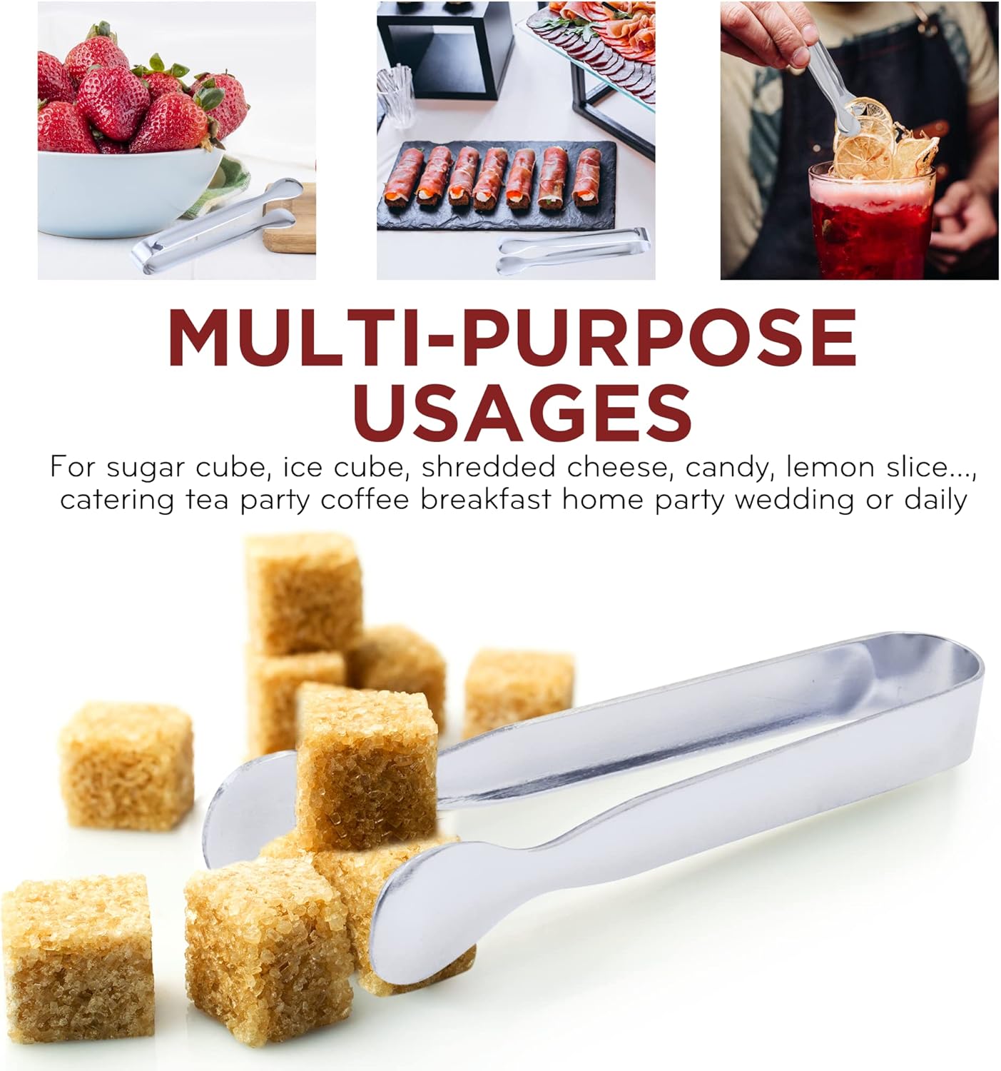 - Multifunctional Usages: These small tongs are suitable for sugar cubes, ice cubes, lemon slices, grated carrots, marshmallows, shredded cheese, jelly cookies, crescent rolls, soft cheese, buffet or pickle slices, etc.