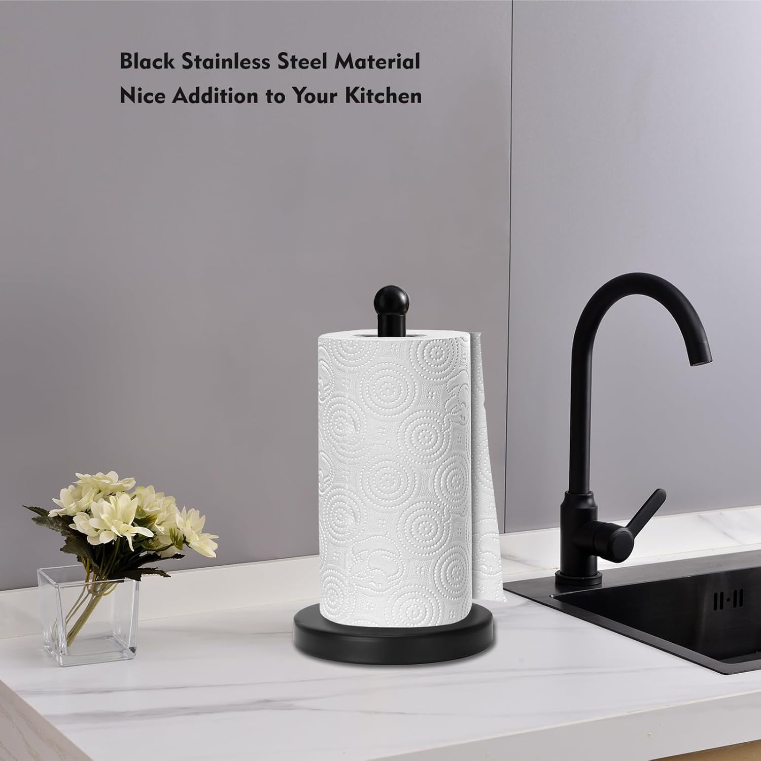 Noonext Paper Towel Holder Stand with Sturdy Base, Black Matte Paper Towel Holder Countertop (Black)