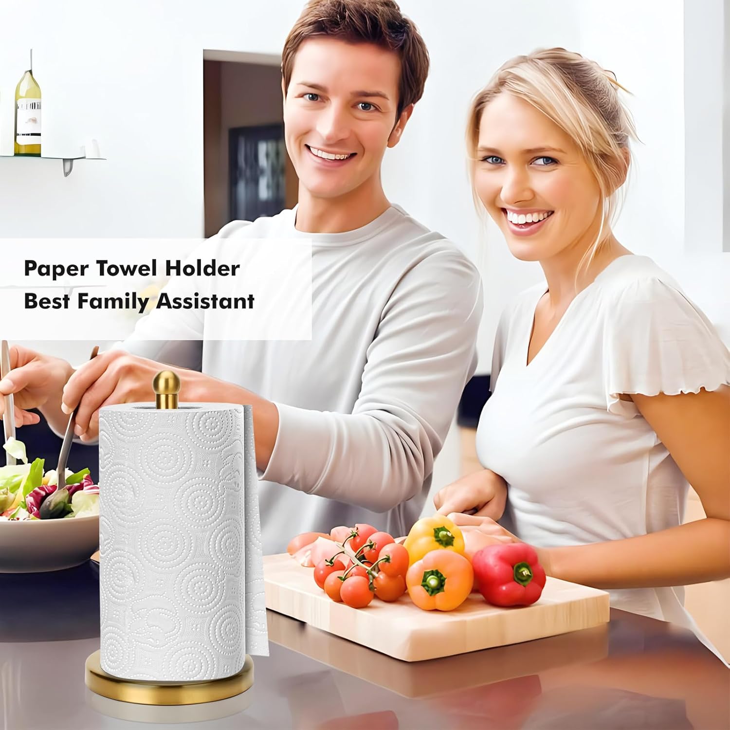 Paper Towel Holder Stand with Sturdy Base Fits Standard and Jumbo Sized Paper Towel, Paper Towel Holder Countertop (Gold)