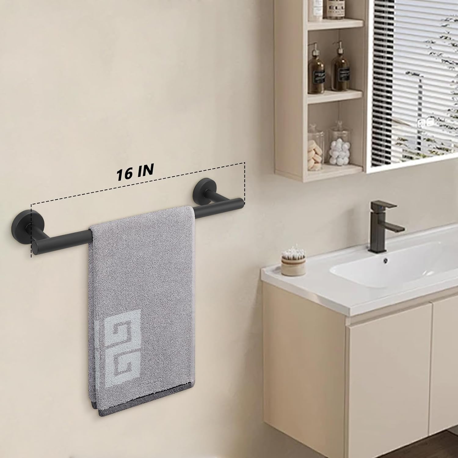NearMoon Bath Towel Bar, Bath Accessories Thicken Stainless Steel Shower Towel Rack for Bathroom, Towel Holder Wall Mounted (2 Pack, Matte Black, 16 Inch)