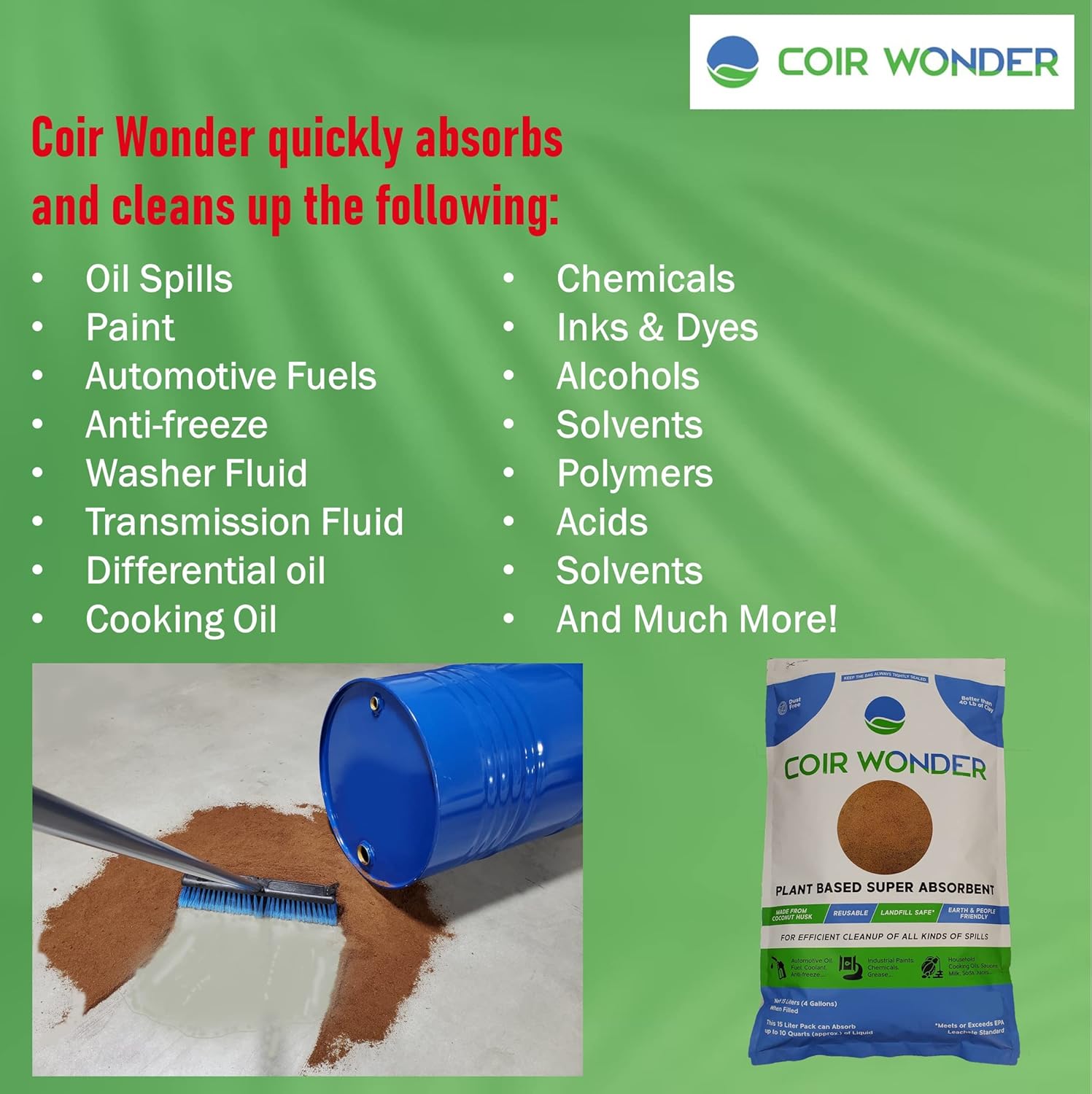 - 100% Natural Coconut Husk Granules: Lightweight, plant-based absorbent made from sustainable coconut coir—non-toxic, non-dusty, landfill-safe.