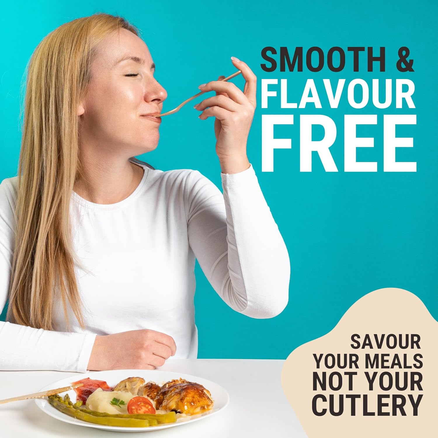- FLAVOR-FREE & SMOOTH: Taste Your Meal, Not Your Utensils! Unlike Wooden Cutlery, Disposable Bamboo Cutlery Is Naturally Flavorless, With No Aftertastes.